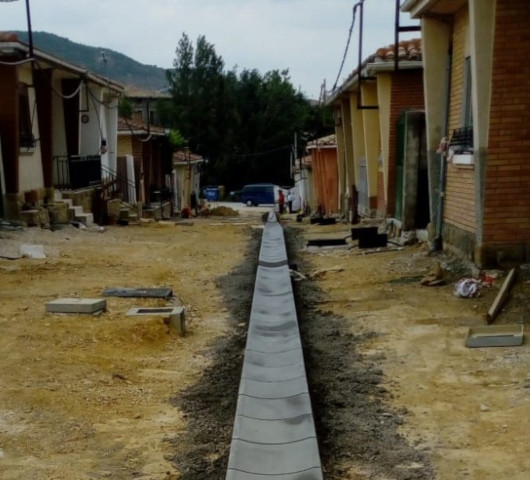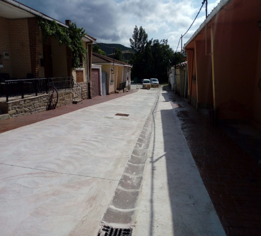 Renovación de redes y pavimentación del Barrio de San Juan, en Aibar (Navarra), adaptándola a las nuevas necesidades del barrio y sustituyéndola por un caz central y dos tiras de hormigón con dos aceras en adoquín en ambos laterales.