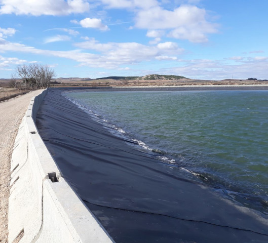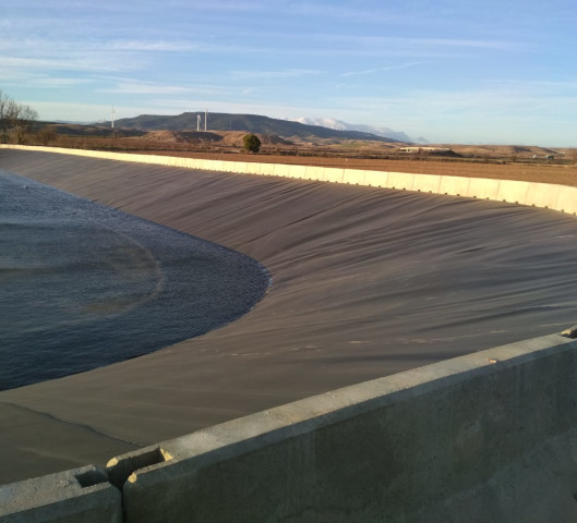 Impermeabilización de la Balsa de abastecimiento de agua y renovación de la conducción en alta “Toma Canal de Lodosa-Balsa” en Cortes (Navarra).