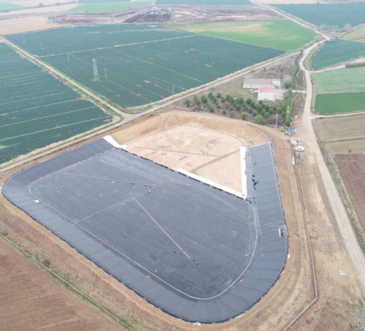 - • Colocación de la nueva lámina de PE de 2 mm en una superficie de 21.831 metros cuadrados.